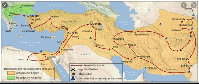 His journey to conquer the Persian Empire would take over 12 years to establish control and would be on the following road: