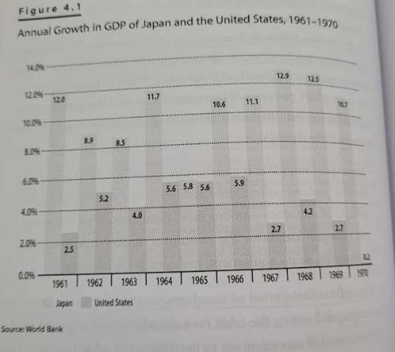 - Below can be seen the growth of Japan’s GDP i.r.t. the US: