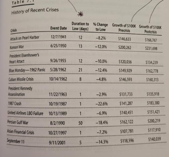 - In the next chapter, the author goes deeper into moments of crises that hit the world, and how it impacted the stock markets.